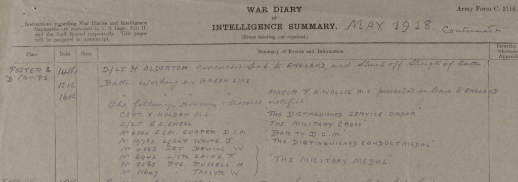 Lister later recalled “I saw the enemy’s infantry emerging from Tertre in large numbers. I counted on the east side of the road some 400-500 men. Fire was at once opened upon them and it could be seen that the enemy was suffering considerable loss. After a short time, he returned the fire heavily. Since the action I have ascertained that in my immediate front the Germans had three Battalions of the Brandenburg Grenadiers, one Battery of Artillery and one Machine Gun Company. The Officers, N.C.O.’s and men of the Company behaved well under difficult circumstances.”